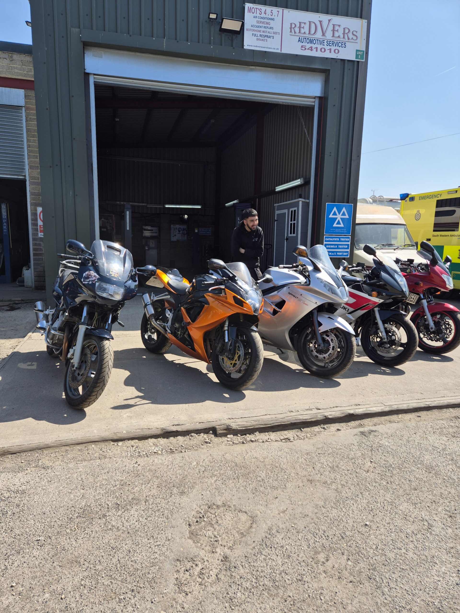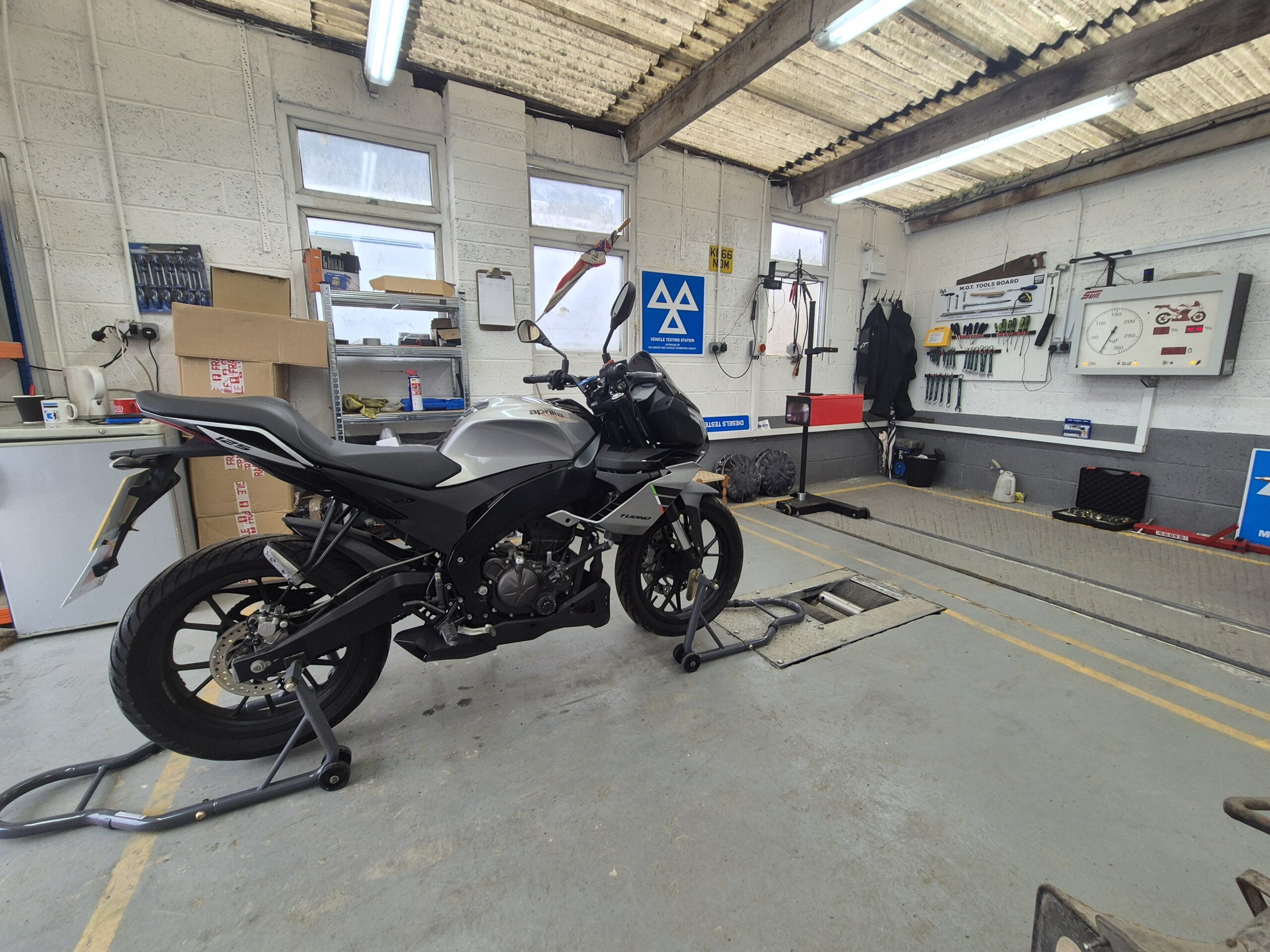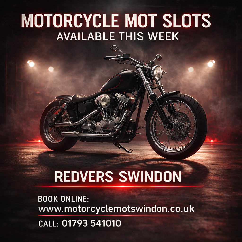 The Motorcycle MOT Test Centre at Redvers Services offers motorcycle MOT testing 5 days a week, carried out onsite in our fully equipped, DVSA (VOSA)-approved, computerised and automated motorcycle MOT testing bay in Swindon.